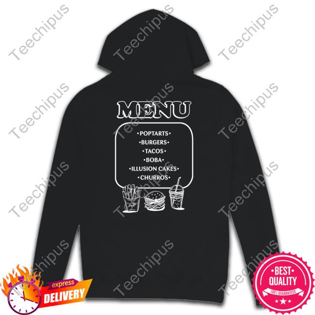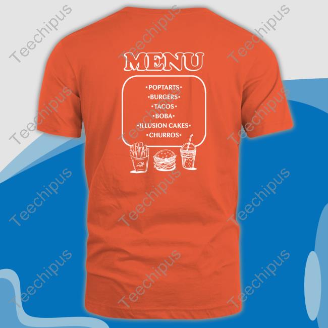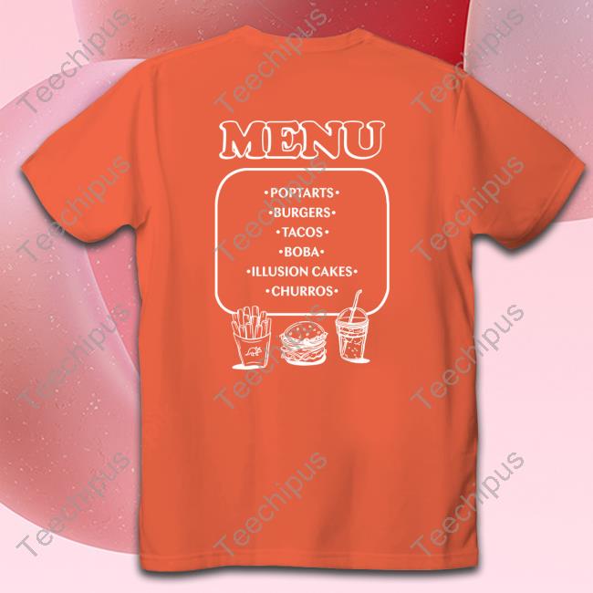 Menu Poptarts Burgers Tacos Boba Illusion Cakes Churros Shirt