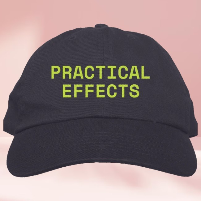 The Super Yaki Store Merch Practical Effects Hat is a must-have accessory for movie lovers who appreciate the art of hands-on filmmaking. Featuring the phrase “Practical Effects” on the front, this hat celebrates the craftsmanship and creativity behind real, in-camera effects that define classic cinema.Made from high-quality, durable materials, the hat offers a comfortable fit for everyday wear. Its structured design keeps a clean, polished look, while the breathable fabric ensures all-day comfort. The adjustable strap at the back allows for a secure and customizable fit, making it suitable for a wide range of head sizes.